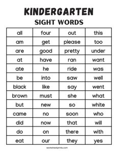 By using our free sight words printables regularly, children can build a strong foundation in reading and improve their fluency and comprehension skills. These printables are a valuable resource for helping young learners become confident and proficient readers.