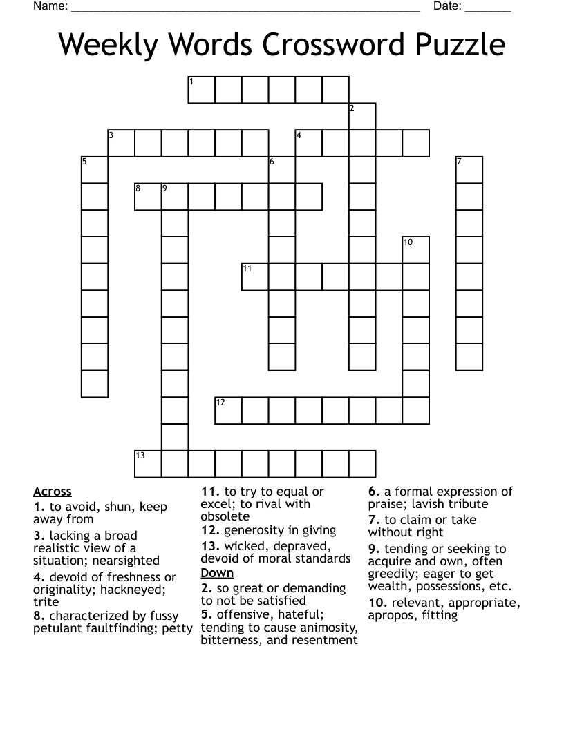 Weekly Words Crossword Puzzle WordMintWeekly Words Crossword Puzzle WordMint