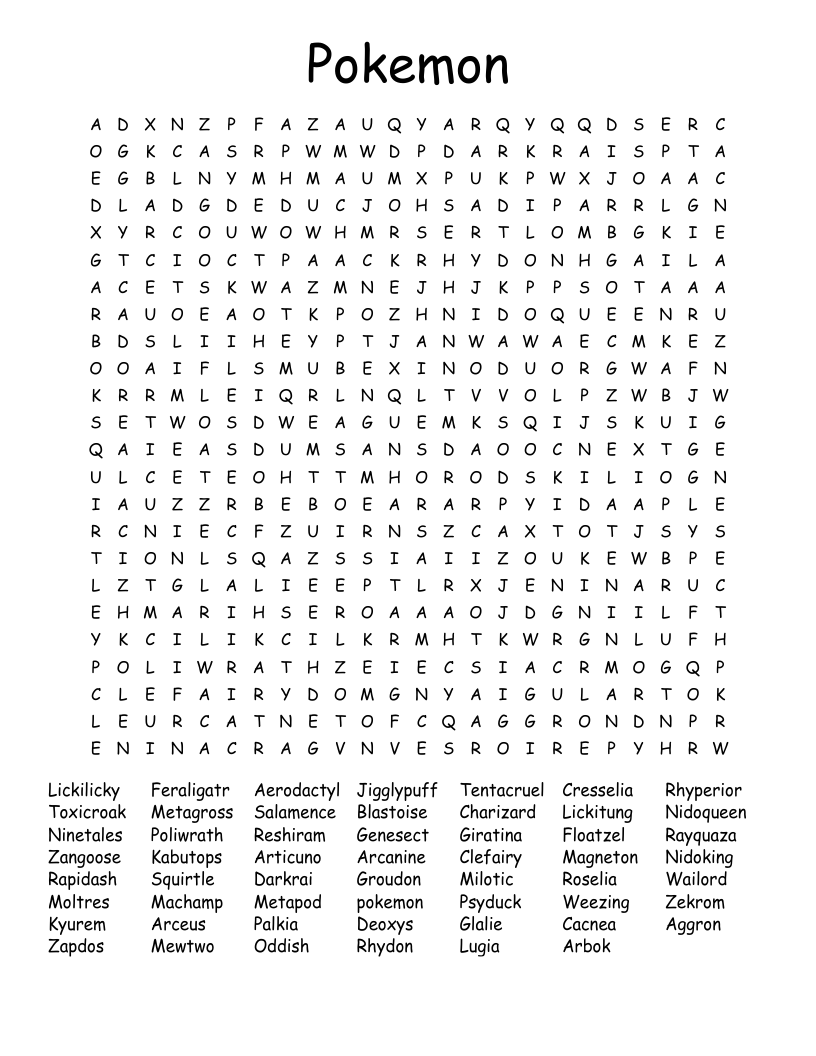 Pokemon Word Search Puzzles Printable Word Search MakerPokemon Word Search Puzzles Printable Word Search Maker
